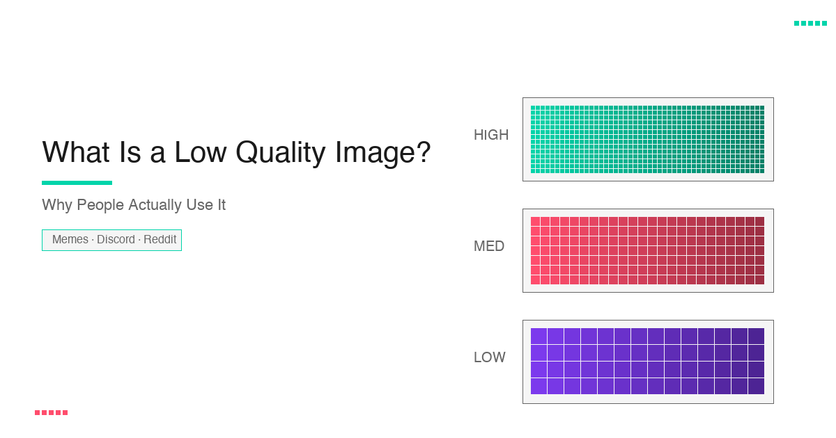 Why low quality images dominate memes, Discord, and Reddit. Discover why compressed images go viral and when low quality is the professional choice.